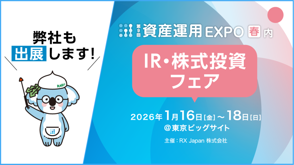 資産運用EXPO【春】IR・株式投資フェアに出展します(1/16~18)