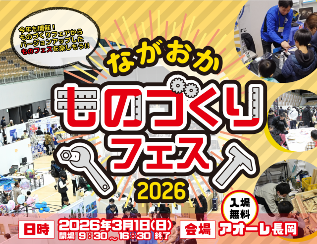 当社は、2026年3月1日(日)にアオーレ長岡(新潟県長岡市)で開催される『長岡ものづくりフェス2026』に出展します。
